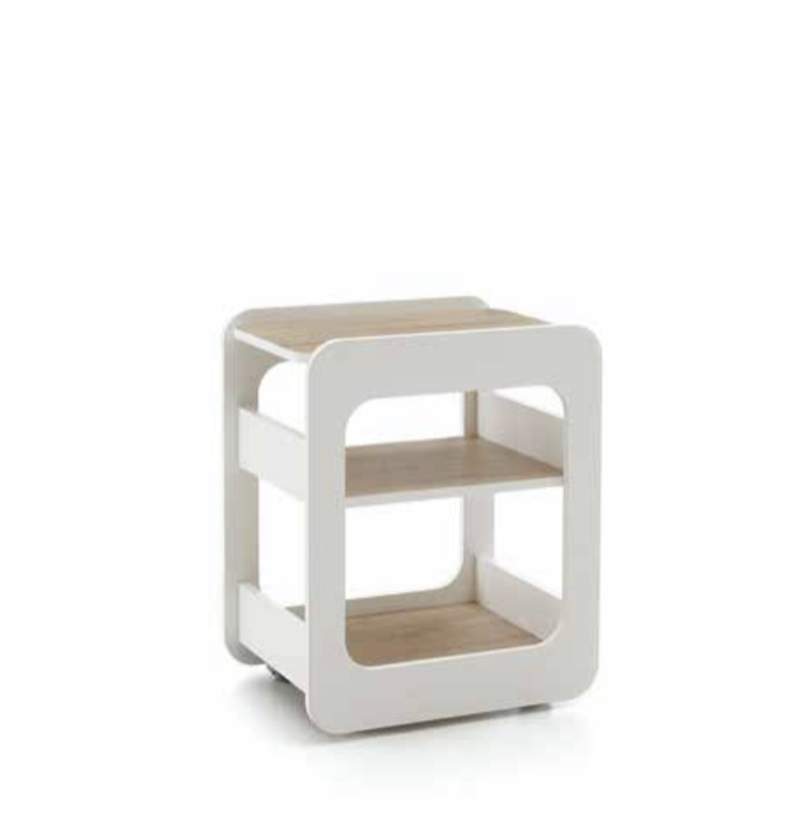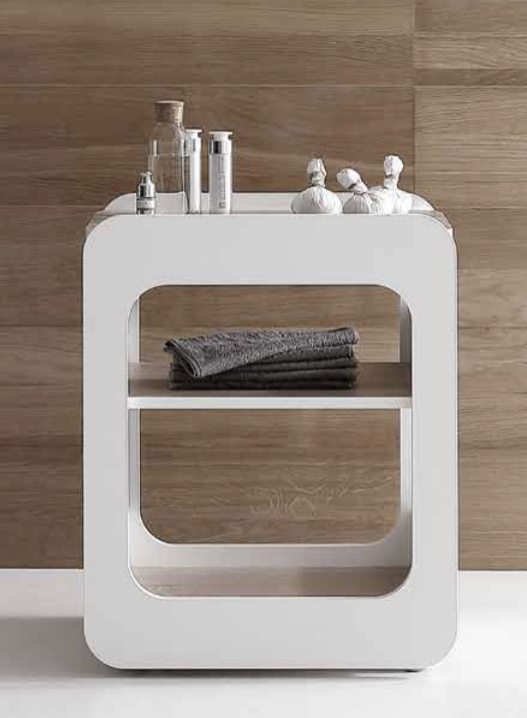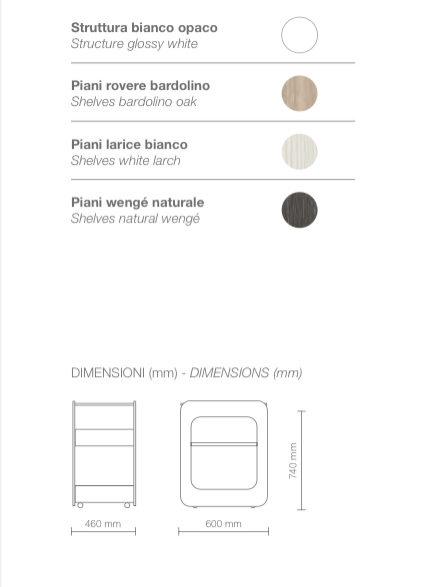 in nobilitato bianco opaco con ripiani disponibilI in due diverse finiture: larice bianco