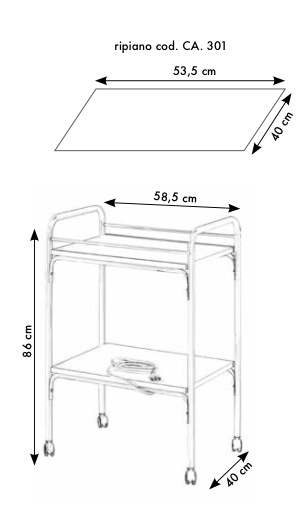 CARRELLO DUE PIANI IN ACCIAIO VERNICIATO BIANCO CON PRESA DI CORRENTE